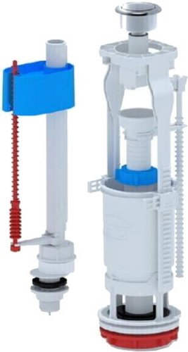 Описание Набор для бачка унитаза. Наливной механизм с нижней подводкой и пластиковой резьбой диаметром 1/2. Сливной механизм металлизированная кнопка с одним режимом слива эконом | |