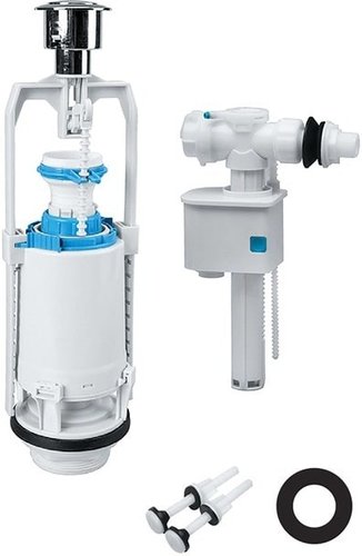 для бачка унитаза, пластик, боковой подвод воды, со стоп-функцией, белый/синий/хром