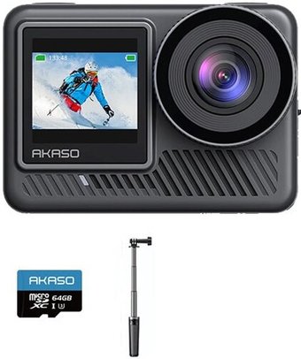 | Комплект поставки | 1 х экшн-камера AKASO Brave 8 Lite 1 х карта памяти microSD 64GB 1 х 22 см селфи-палка трипод 1 х рамка для камеры 1 х пульт дистанционного управления 1 х зарядное устройство для аккумуляторов 2 х аккумулятора 1550 мА·ч 7 х креплений 2 х крепления на шлем 1 х салфетка для объектива 1 х крепление на руль 4 х повязки 5 х страховочных тросиков 1 х USB-кабель 2 х двусторонние клейкие ленты 1 х гаечный ключ 1 х руководство по быстрому запуску |