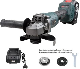 | Комплект поставки | - УШМ аккумуляторная - 1 шт - Защитный кожух - 1 шт - Быстрозажимная гайка - 1 шт - Ключевая гайка - 1 шт. - Дополнительная рукоятка - 1 шт - АКБ - 1 шт - Зарядное устройство - 1 шт - Фланцевый ключ - 1 шт - Руководство по эксплуатации - 1 шт |