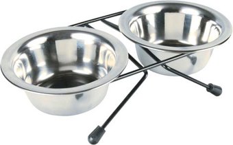 Отличная конструкция чаши, корм максимально задерживается на стенках и минимально может выбрасываться за пределы. Ножки подставки прорезинены и не дают скольжения. Цена также радует.Достоинства: Не скользит, форма чашек, цена