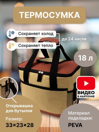 Заказывал через онлайнер прайм) Сама сумка удобная, в меру, и не большая, и не маленькая, ручки надежные( хотя я бы сами карабинчики поменял на металлические), липучки добротные, цвет приятный, выглядит стильно). Спереди есть кармашек для аккумулятора холода. По бокам сеточки не сильно ёмкие но для всяких мелочей сойдёт.Достоинства: Цена, цвет, лямка под плечо, липучка для ручек, отдельный вход сверху что то быстро достать.