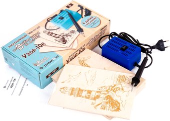 | Комплектация | электроприбор для выжигания по дереву, 8 досок, руководство по эксплуатации |