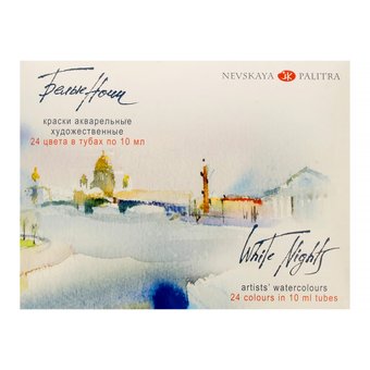 Описание Набор профессиональных акварельных красок БЕЛЫЕ НОЧИ включает в себя 24 тубы объемом 10мл. | |