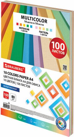 100 в наборе, ассорти, формат A4, плотность 80 г/кв.м.