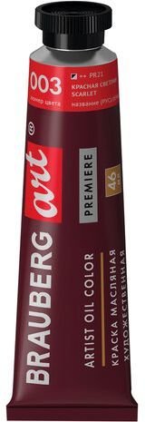 Масляные краски BRAUBERG Art Premiere 191407 (красная светлая, 46 мл)