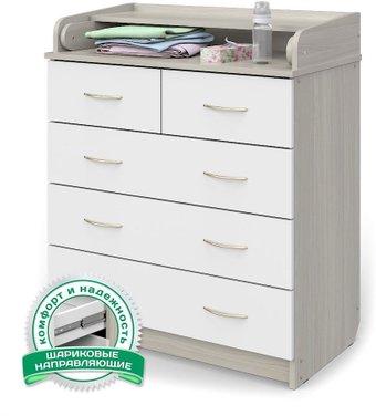 Если Вы купили так много вещей для своего малыша, что в комнате завешены все стулья, то Вам подойдет именно этот комод. Роликовые направляющие было решено заменить шариковыми для лучшего и более долгого использования. Широкий, удобный и надежный.