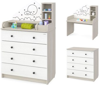 4 ящика, откидная полка, фасады: ЛДСП, стенки: ЛДСП, цвет: белый (фасад)/бежевый (стенки)