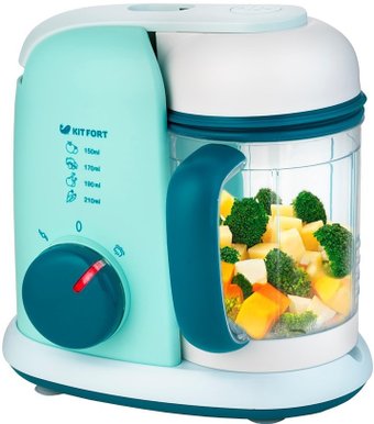 Описание Вкусные и полезные блюда лучше всего готовить на пару — продукты готовятся равномерно и не пригорают, в них сохраняются полезные вещества и витамины. Для прикорма маленьких детей приготовленную пищу необходимо измельчить до нужной консистенции. Блендер-пароварка Kitfort KT-2305 готовит в два приема: варит на пару, затем измельчает и смешивает. Он будет хорошим помощником родителей на кухне и поможет сэкономить время. Благодаря корзине, пар во время готовки постоянно циркулирует в чаше и равномерно прогревает продукты. По окончании готовки прибор автоматически отключается, поэтому пища не переварится. | |