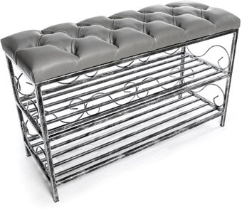 металл, обивка: искусственная кожа, полка для обуви, 80x30x49 см, цвет: серебристый/серый/черный