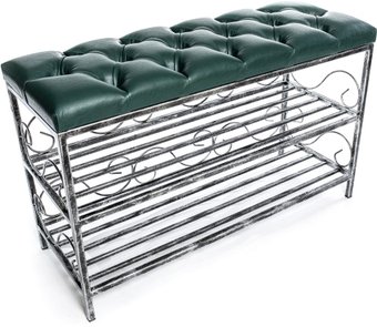металл, обивка: искусственная кожа, полка для обуви, 80x30x49 см, цвет: зеленый/серебристый/черный