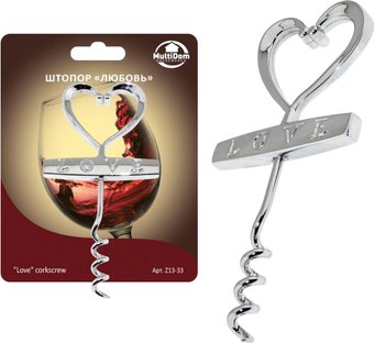 Описание Классический штопор — незаменимое приспособление для открывания винных бутылок с пробками. Изделие выполнено с ручкой в виде сердца. За такую ручку удобно держать инструмент во время закручивания и выталкивания штопора. Вкрутите спираль строго посередине пробки, затем аккуратно вытаскивайте, держа за горизонтальную перекладину или за ручку-сердце. Инструмент не просто функционален, он станет еще и стильным кухонным аксессуаром. Изделие компактно, подходит как для кухни, так и для использования на даче, в поездке, на пикнике. | |
