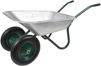 Хлипкое корытце,в следствии чего забирал из магазина чуточку деформированные края.Отсутствии какой либо документации по сборке тачки.Достоинства: наверное цена,двухколесная,подшипники на колесах а не втулки,колеса с подкачкой.