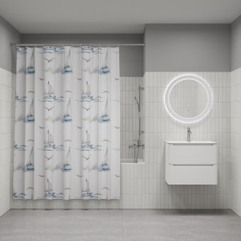 Описание ✅ Текстильная штора для ванной белого цвета с акварельным принтом в виде чаек и яхт на морских волнах. Штора освежит пространство и привнесет в него легкое настроение. | |