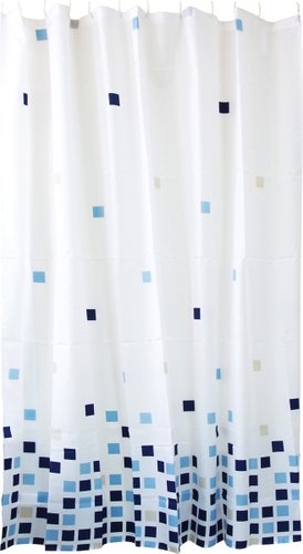 форма квадратная, материал шторки полиэстер, кольца в комплекте, 180х180 см, голубой/рисунок/белый/синий