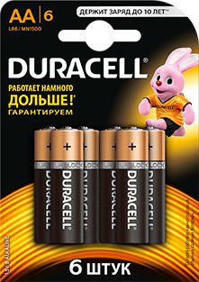 батарейка, 6 шт., типоразмер AA, электролит щелочной, срок хранения 10 лет