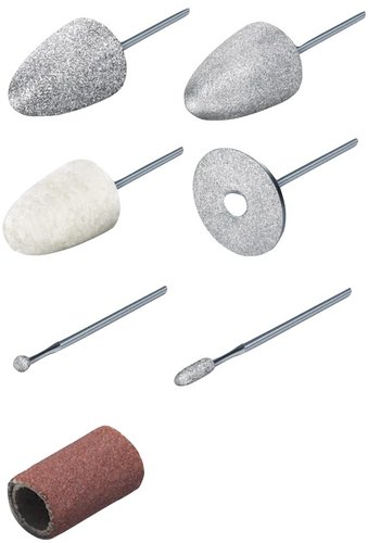 | Комплектация | В комплект входят 6 высококачественных сапфировых и войлочных насадок: Сапфировый диск, мягкий: подпиливание и обработка ногтей, имеет мелкозернистую структуру Сапфировый конус, мягкий: для удаления сухой и ороговевшей кожи, мозолей на подошвах и пятках, а также для обработки ногтей Сапфировый конус, жесткий: подходит для быстрого удаления толстого слоя ороговевшей кожи или крупных мозолей на подошвах и пятках. Эта насадка предназначена для обработки большой поверхности Войлочный конус: сглаживание и полировка края ногтя после спиливания, а также очистка поверхности ногтя Бор в форме пламени: для удаления вросших ногтей Сапфировая насадка, круглая: для бережного удаления натоптышей Также в комплекте 10 одноразовых насадок из наждачной бумаги. |