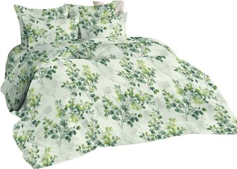 2-спальный, бязь (хлопок), пододеяльник 175x217 см, простыня 195x217 см, наволочка 70x70 см, белый/зеленый