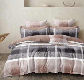 семейный, сатин, простыня 215x240 см, наволочка 70x70/50x70 см, темно-синий/бежевый/серый/белый