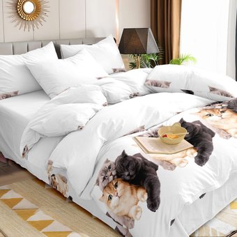 Описание ✅ Комплект постельного белья из бязи, выполненный из 100% хлопка, порадует вас своим милым принтом с пушистиками. | |