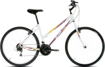26", рама 15"/17", горный, женский, сталь Hi-ten, вилка жесткая, трансмиссия 18 скор. (3х6), переключатели: задний Sunrun/передний Sunrun, тормоз ободной механический, вес 15.2 кг