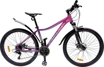26", рама 16", горный, кросс-кантри, женский, сталь Hi-ten, вилка амортизационная с ходом 60 мм (сталь Hi-ten), трансмиссия 21 скор. (3х7), переключатели: задний Shimano Tourney/передний Shimano Tourney, тормоз дисковый механический