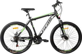 27.5", рама 21", горный, кросс-кантри, сталь Hi-ten, вилка амортизационная с ходом 80 мм (сталь Hi-ten), трансмиссия 21 скор. (3х7), переключатели: задний Shimano/передний Shimano, тормоз дисковый механический, вес 17.2 кг