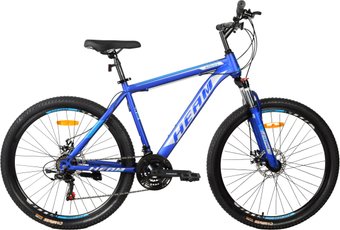 27.5", рама 21", горный, кросс-кантри, сталь Hi-ten, вилка амортизационная с ходом 80 мм (сталь Hi-ten), трансмиссия 21 скор. (3х7), переключатели: задний Shimano/передний Shimano, тормоз дисковый механический, вес 17.2 кг