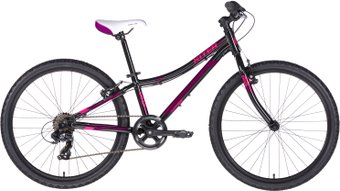 24", рама 11", горный, женский, подростковый, алюминий, вилка жесткая (сталь Hi-ten), трансмиссия 6 скор. (1х6), переключатели: задний Shimano, тормоз ободной механический