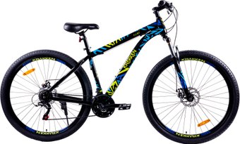 29", рама 18", горный, сталь Hi-ten, вилка амортизационная с ходом 100 мм, трансмиссия 21 скор. (3х7), переключатели: задний Shimano Tourney/передний Shimano Tourney, тормоз дисковый механический