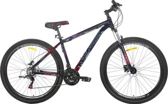 29", рама 18", горный, алюминий, вилка амортизационная с ходом 100 мм, трансмиссия 21 скор. (3х7), переключатели: задний Shimano Tourney/передний Shimano Tourney, тормоз дисковый гидравлический, вес 16 кг