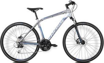 28", гибридный, алюминий, вилка амортизационная с ходом 63 мм, трансмиссия 24 скор. (3х8), переключатели: задний Shimano Alivio/передний Shimano Altus, тормоз дисковый гидравлический, вес 14.6 кг