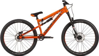 26", горный, дерт (dirt), двухподвес, алюминий, вилка амортизационная с ходом 120 мм (алюминий), трансмиссия 1 скор. (1х1), тормоз дисковый гидравлический, вес 13.8 кг
