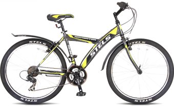 26", горный, сталь Hi-ten, вилка жесткая, трансмиссия 18 скор. (3х6), переключатели: задний Shimano Tourney/передний Shimano Tourney, тормоз ободной механический