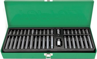 40 шт, хвостовик шестигранный, размер папа (M): 1/2" Hex, 3/8" Hex, рабочий размер биты: H5, H6, H8, H4, H10, H12, T30, T40, T45, T50, T55, M12, T20, T25, M10, H7, M5, M6, M8