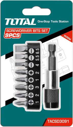 9 шт, рабочий размер биты: PH1, PH2, PH3, PZ1, PZ2, SL4, SL5.5, SL6.5