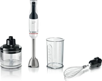 | Комплектация | Блендер из нержавеющей стали с ножем QuattroBlade Измельчитель для специй, орехов, сыра, мяса и многого другого (полезный объем 500 мл) Венчик из нержавеющей стали для взбивания сливок или яичного белка Мерный стакан в комплекте |