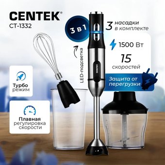 Описание ✅ Блендер Centek CT-1332 – это многофункциональный качественный прибор, позволяющий смешать или измельчить продукты в считаные секунды. | |