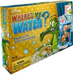 | Комплектация | Игровое поле — стена с участками для препятствий и воронками; фигурка крокодильчика; большая ванна; 15 шариков — «капель» воды; 48 карточек с заданиями; 35 препятствий — колышков, труб; правила игры |