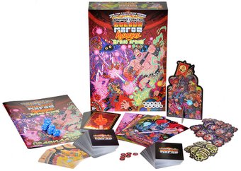 | Комплектация | 30 карт заводил 30 карт наворотов 30 карт приходов 8 карт "Шальная магия" 25 карт сокровищ 10 карт разгона 15 карт чемпионов 8 планшетов героев 15 жетонов дохлых колдунов 30 жетонов фанатов 6 черепушек для отсчёта жизней 6 шестигранных кубиков Символ анархии Правила игры |
