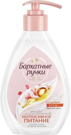 Описание Крем-мыло жидкое Бархатные ручки Интенсивное питание 240 мл содержит ухаживающие компоненты крема и миндальное масло для заботы о ваших руках. Формула крем-мыла образует пышную, плотную пену и обеспечивает ультранежное очищение и питание кожи во время мытья рук, а тонкий восточный аромат дарит дополнительное удовольствие. | |