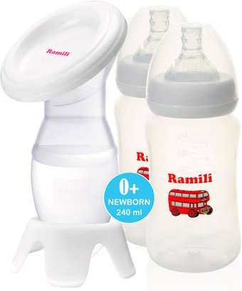 | Комплектация | Ручной молокоотсос MC200 Крышка Подставка 2 противоколиковые бутылочки для кормления Ramili 240ML |