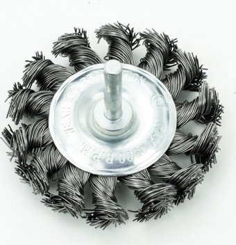 щетка для электроинструмента, дисковая, ворс: крученая "косички" (сталь), обрабатываемый материал: металл, диаметр 75 мм, резьба M14