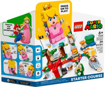 Познакомьте детей с интерактивной вселенной LEGO Super Mario со стартовым набором «Приключения вместе с Пич» (71403). В него входит фигурка Пич LEGO, способная моментально реагировать на ваши действия с помощью ЖК-экранов или динамика. Пич LEGO можно объединить с Марио LEGO или Луиджи LEGO через Bluetooth (дополнительные фигурки не входят в набор), чтобы получить дополнительные монеты за командную работу.