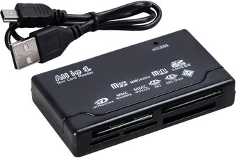 переносной, поддержка: CompactFlash (CF), SD, SDHC, SDXC, microSD, microSDHC, microSDXC, miniSD, miniSDHC, Memory Stick, Memory Stick Duo, Memory Stick PRO, Memory Stick PRO Duo, MMC, порты USB, цвет черный