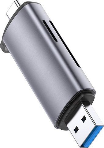 переносной, поддержка: SD, SDHC, SDXC, microSD, microSDHC, microSDXC, MMCmicro, RS-MMC, порты USB, разъем подключения к устройству USB 3.2 Gen1 Type-A (5 Гбит/с)/USB 3.2 Gen1 Type-C (5 Гбит/с), цвет серебристый