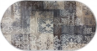 160 x 230 см, овальный, искусственный материал, высокий ворс, полипропилен, бежевый/серый/рисунок