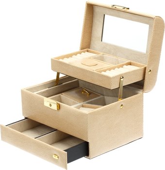 сундук, искусственная кожа, цвет бежевый/золотой, 10 отделений, с зеркалом