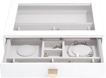 прямоугольная, искусственная кожа, цвет белый, 7 отделений, стеклянная крышка