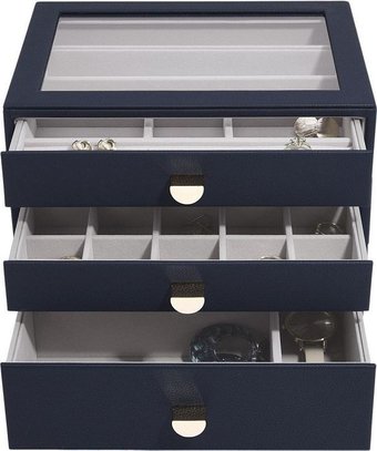 прямоугольная, искусственная кожа, цвет синий, 28 отделений, стеклянная крышка
